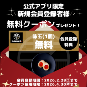 このたび「KAYAVA.総本店」では、2026年1月5日(月)より、公式アプリの新規会員登録者様を対象に期間限定『味玉無料』クーポンプレゼントキャンペーンを実施いたします。ぜひこの機会にご登録のうえ、こだわりの味玉をお得にお楽しみください。